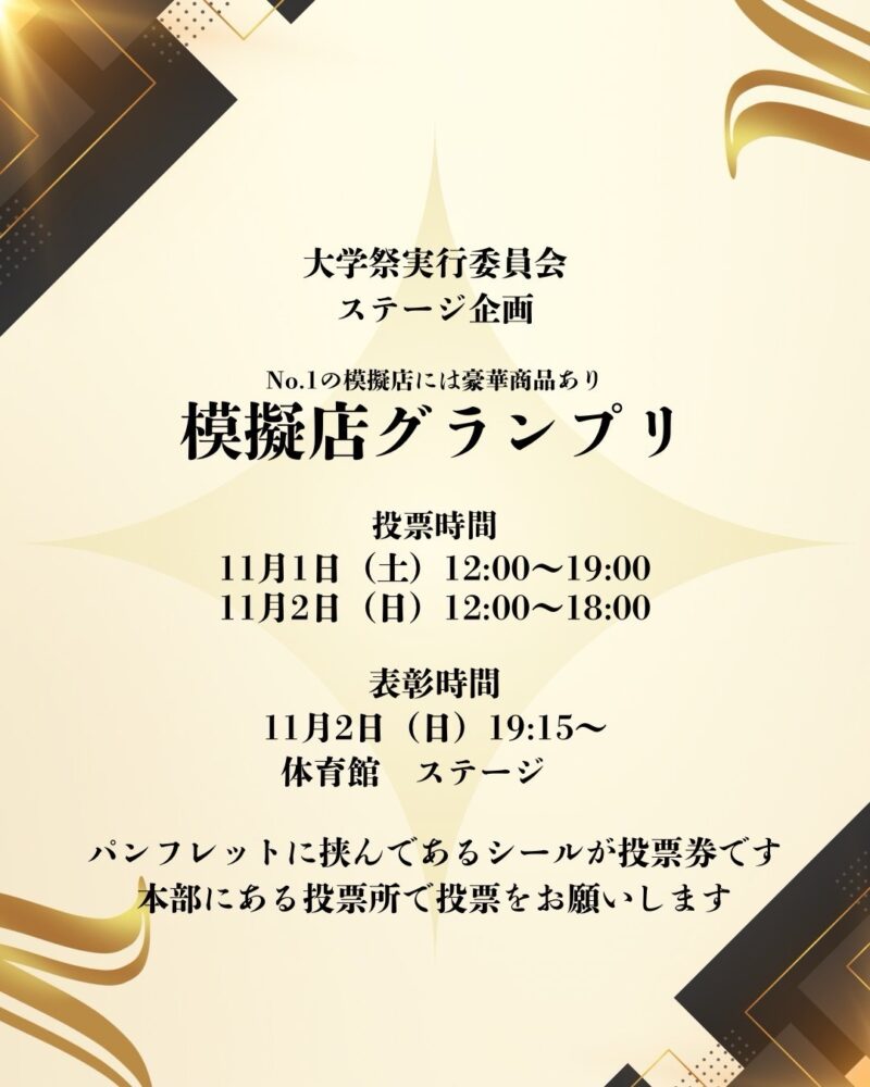 投票は、本部(本館前)、お化け屋敷(A棟2階)、接客態度の悪い店(厚生会館2階)の
